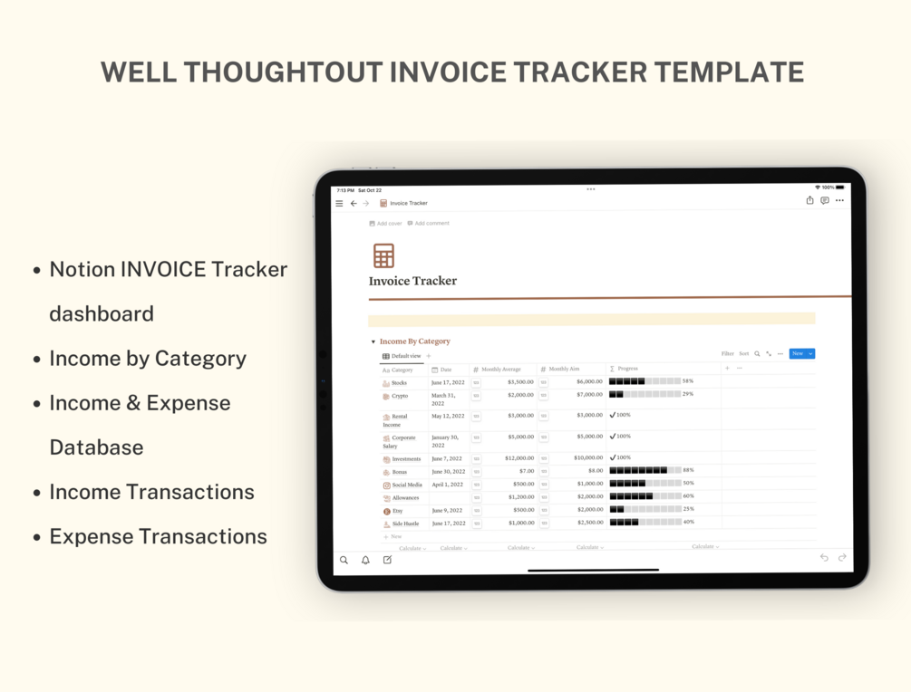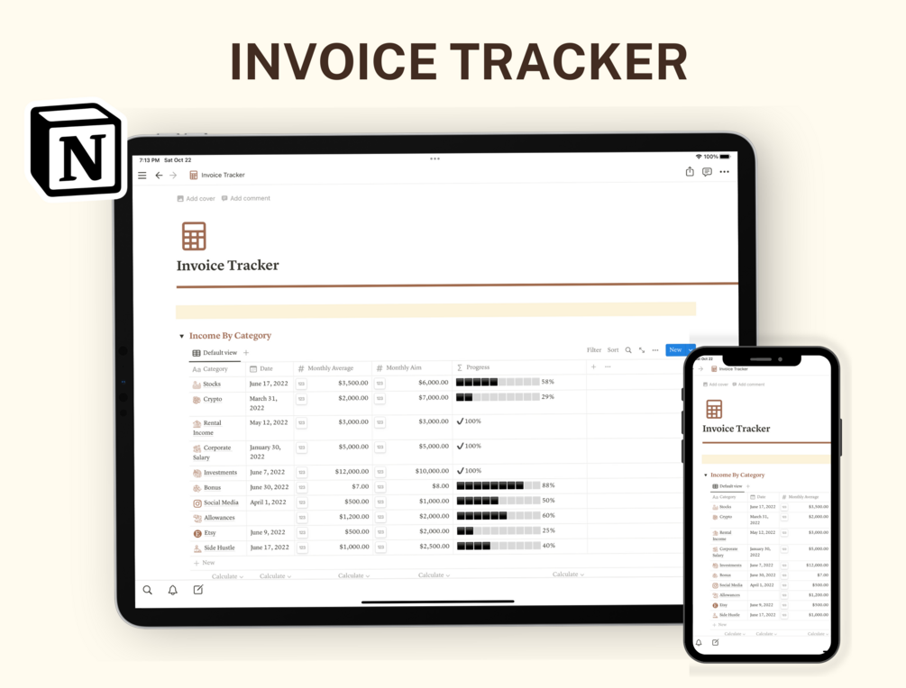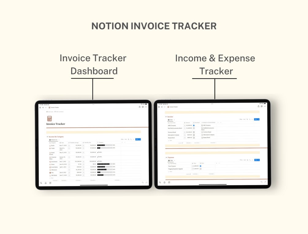 Notion Invoice Tracker , Notion Template, Notion Life Planner, Notion Dashboard Template, Notion Template Aesthetic, Notion Template Personal