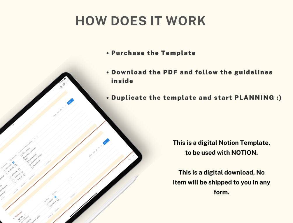 After purchasing, you will be given a link to the "Notion Template". Duplicate it and start planning!!