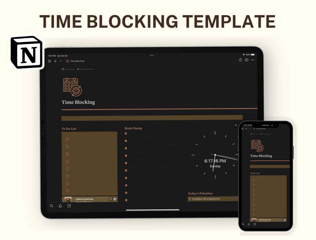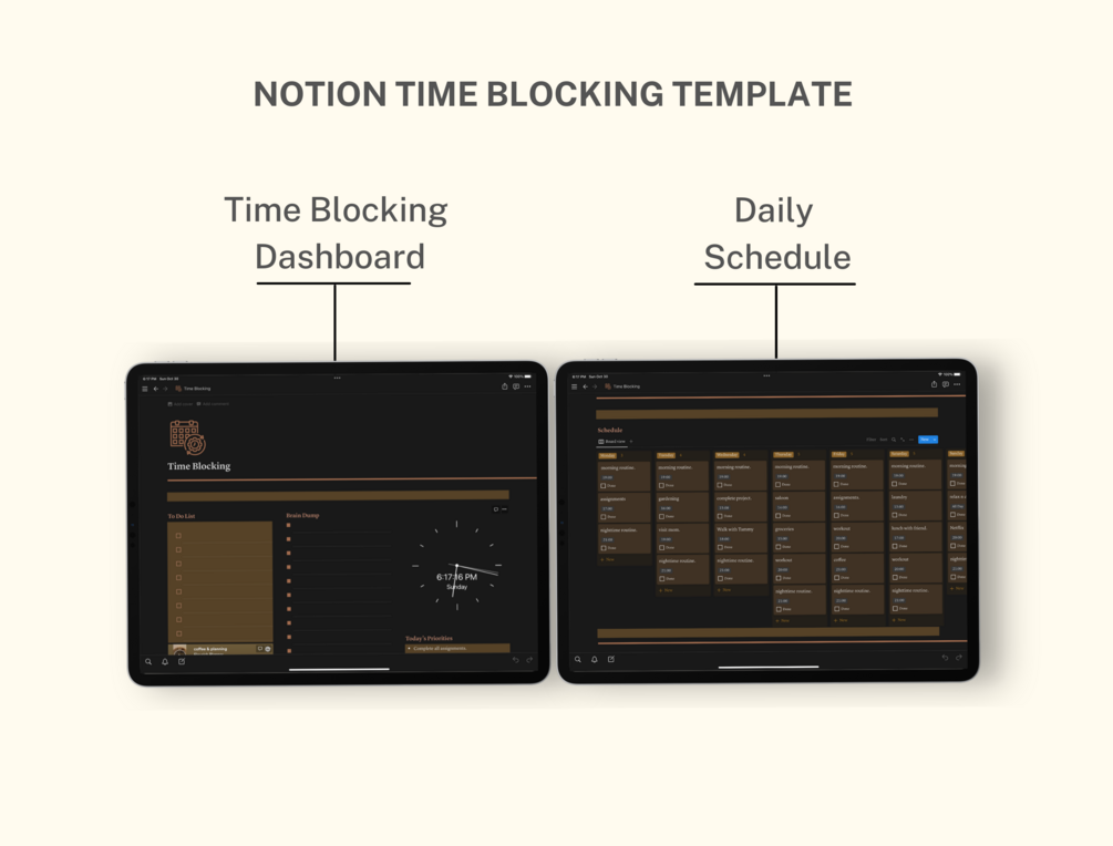 Notion Time Blocking Template. Notion Template, Notion Life Planner, Notion Dashboard Template, Notion Template Aesthetic, Notion Template Personal